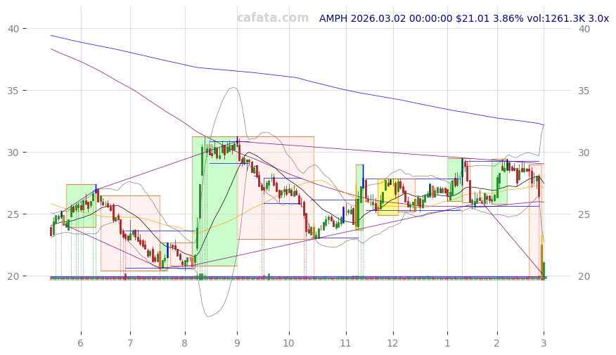 | AMPH | 2026-03-03 | -5.66% | v | -7d | 70 | 294.0k | -21.15% | 2018-11-14 | drug manufacturers - specialty & generic | drug manufacturers - specialty & generic |