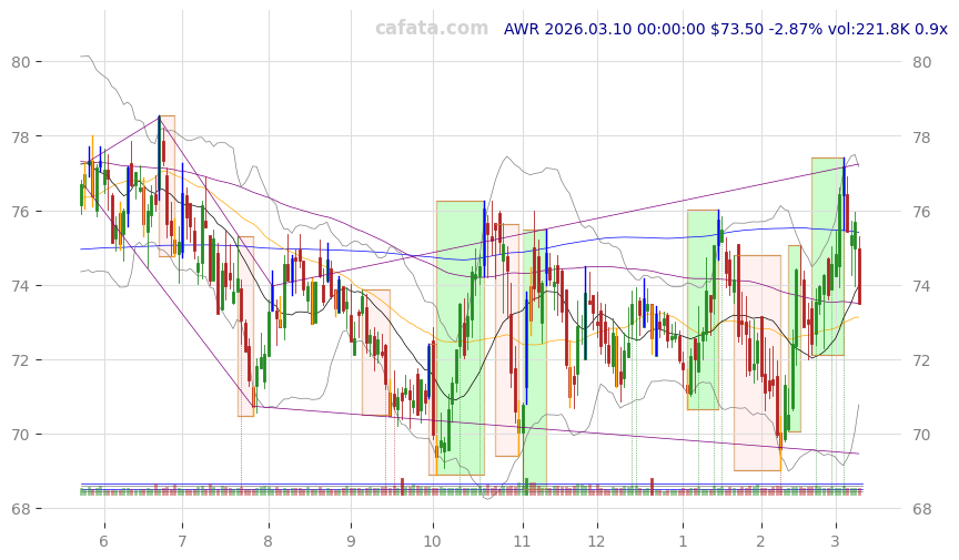 | AWR | 2026-03-11 | -0.99% | v | -2d | 3 | 198.6k | -9.09% | 2018-11-05 | utilities - regulated water | utilities - regulated water |