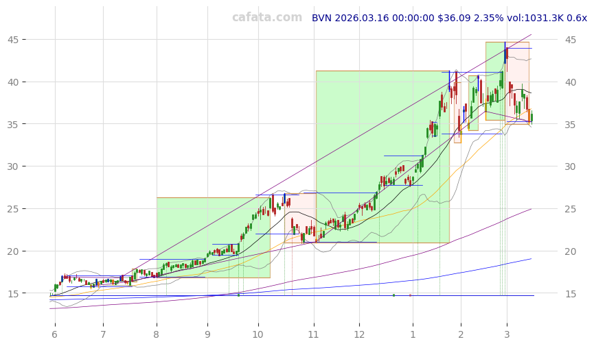 | BVN | 2026-03-17 | 0.39% | v | -2d | 3 | 136.5k | -9.77% | 2018-10-26 | other precious metals & mining | other precious metals & mining |