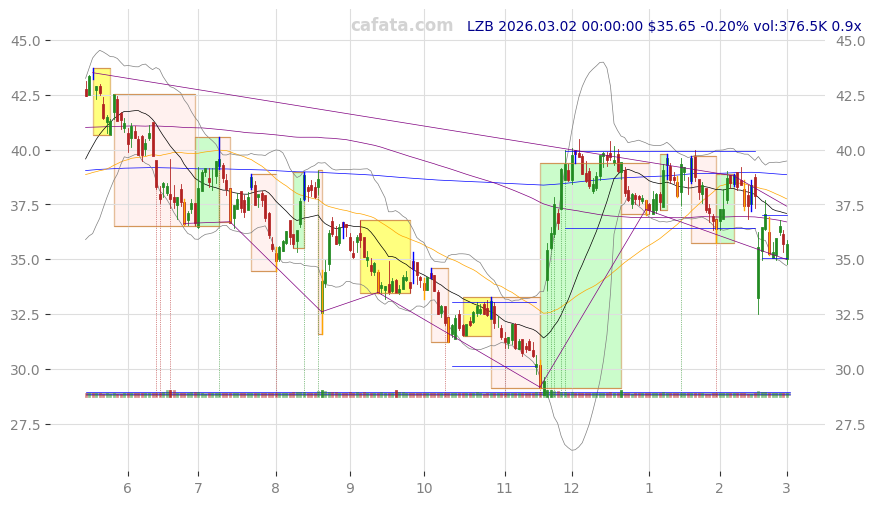 | LZB | 2026-03-02 | -0.20% | v | -2d | 5 | 124.6k | -17.26% | 2018-02-21 | furnishings, fixtures & appliances | furnishings, fixtures & appliances |