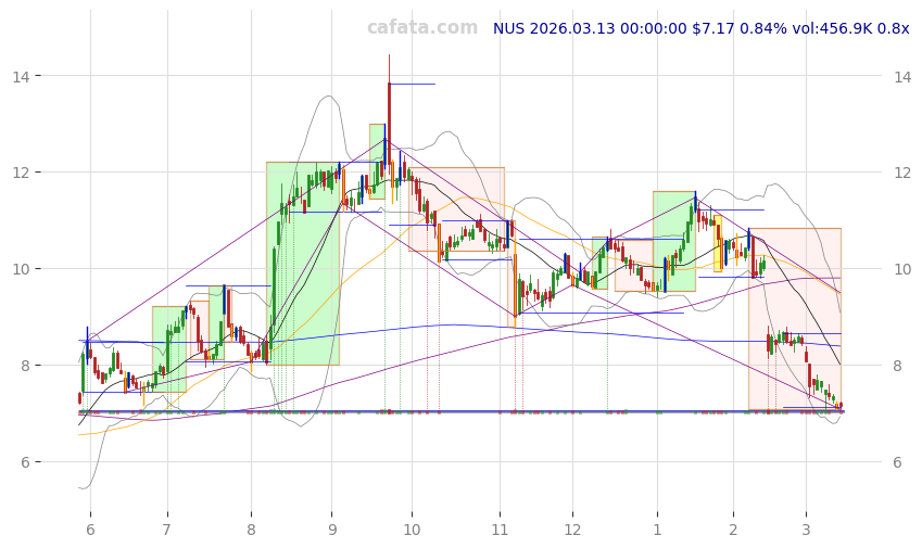 | NUS | 2026-03-13 | 0.84% | v | -3d | 9 | 277.2k | -13.40% | 2018-11-08 | household & personal products | household & personal products |