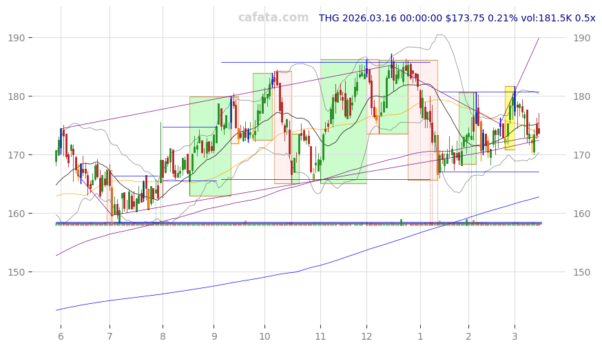 | THG | 2026-03-17 | -0.13% | v | -5d | 4 | 280.9k | -6.71% | 2018-11-01 | insurance - property & casualty | insurance - property & casualty |