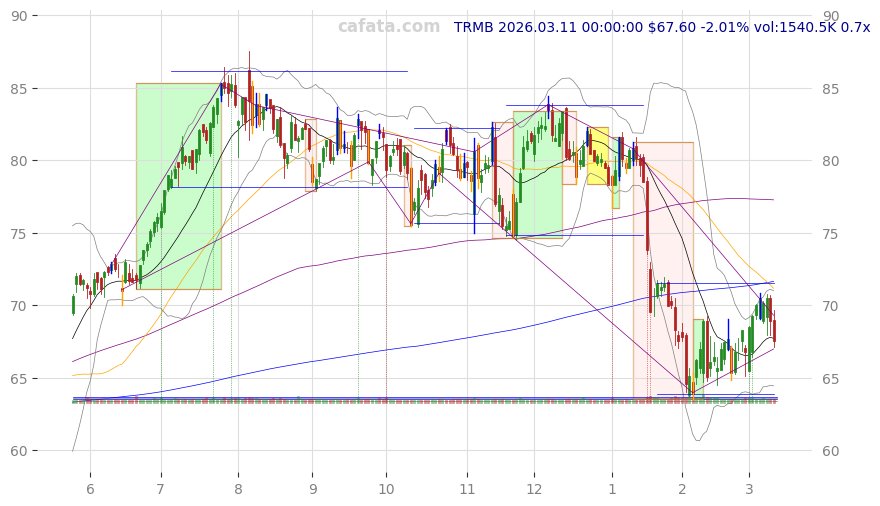 | TRMB | 2026-03-12 | -2.14% | v | -2d | 5 | 759.9k | -10.42% | 2018-10-25 | scientific & technical instruments | scientific & technical instruments |